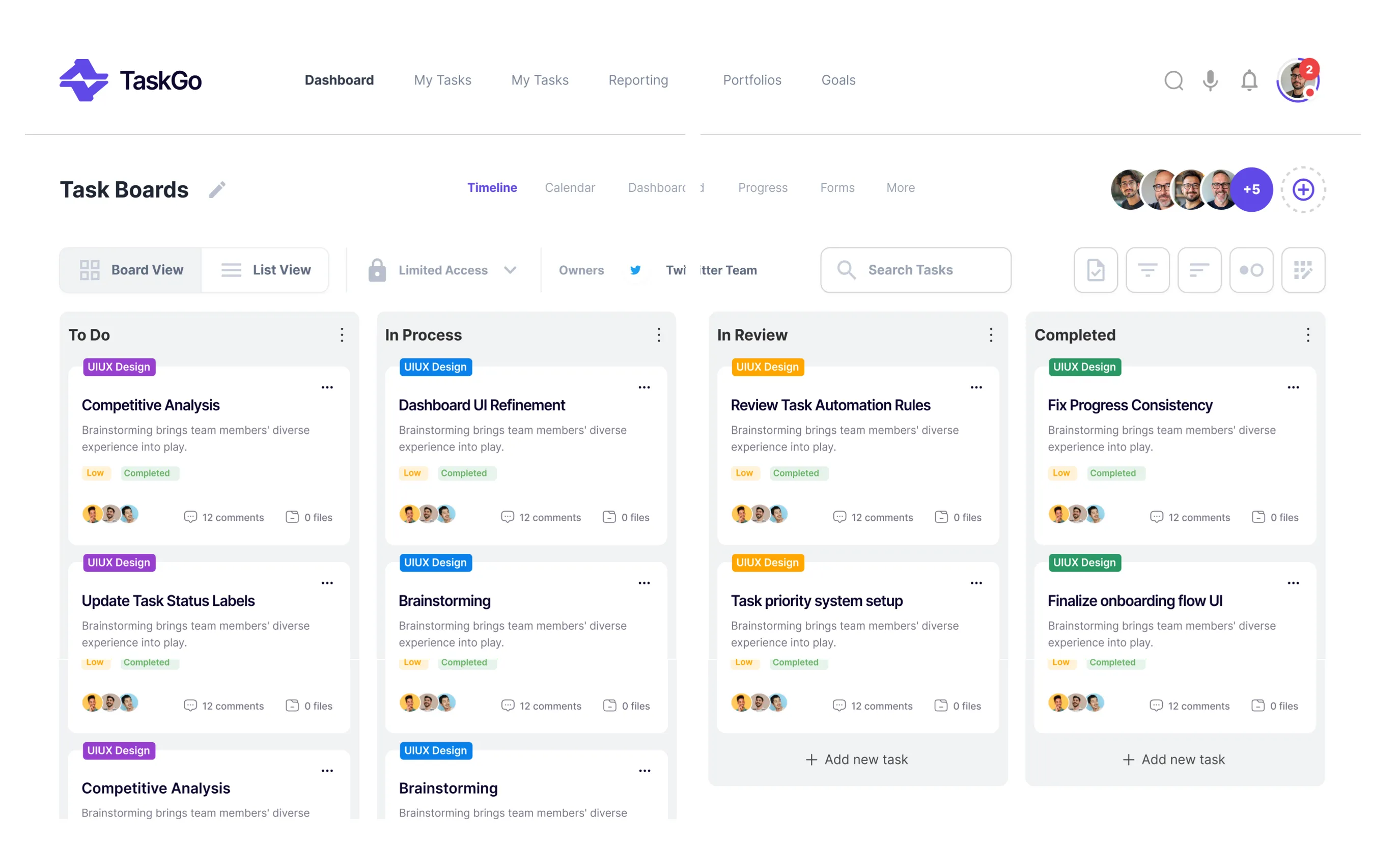 Create, categorize, and prioritize tasks with ease using flexible lists, boards, and timelines.